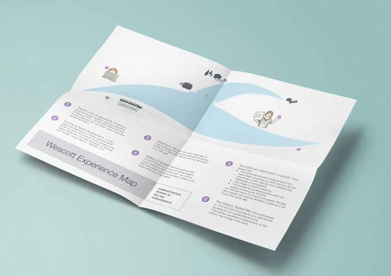 Informed by the research, I prototyped and tested a brochure as proof of concept, with a journey map to set expectations a for the family members, explaining where they can get help, and who they can talk to about specific issues.
